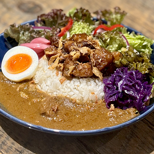 ルーローとムルギーカレーをハーフ&ハーフで両方とも味わえる欲ばりメニュー。ルーローの甘さとカレーの辛さが実はとても合うんです。どちらか迷ったらコレ!