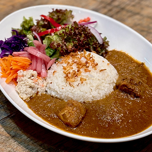 ムルギーはヒンディー語で鶏の意味。大量の玉ねぎ・人参・セロリなどの野菜をスムージー状にしてスパイスで煮込んだインドの定番チキンカレーです。